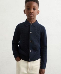 Reiss Kid’s Boys 3-9 Yrs Wool V-stitch Button-through Cardigan In Navy Blue | Navy Blue