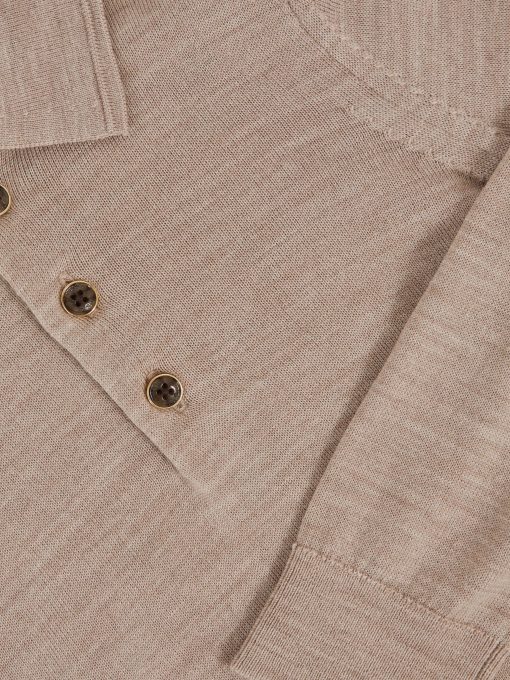 Extra-fine merino wool elevates the Trafford polo shirt from casual staple to luxurious layer. It’s complemented by a subtle mélange and ribbed trims.100% merino woolMélangePolo collar with button placketLong sleevesRibbed hem and cuffs