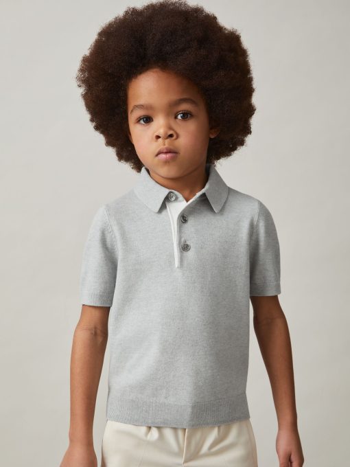 Reiss Kid’s Boys 9-13 Yrs Contrast-placket Polo Shirt With Cotton In Washed Sage | Washed Sage