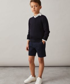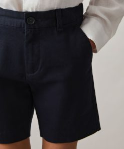 The Navy Wicket chino shorts are crafted from cotton with stretch, offering comfort and style on warm-weather days. Cut to a tailored fit, they feature side slip pockets and buttoned welt pockets at the reverse for a refined finish. Cotton with stretch Side slip pockets Buttoned welt pockets to reverse Front button with zip