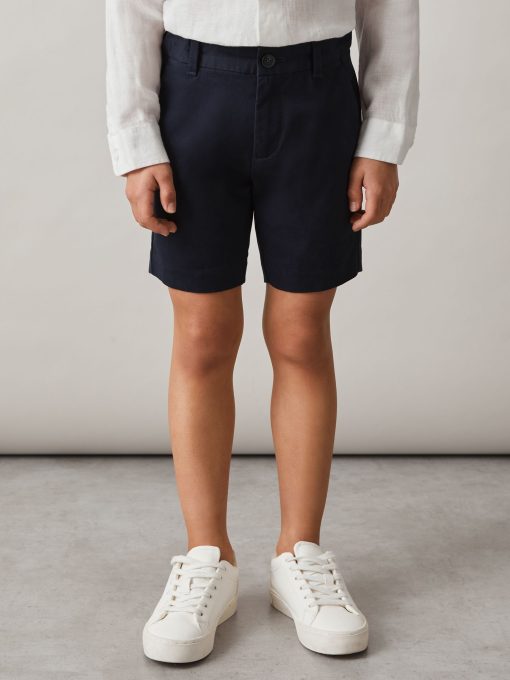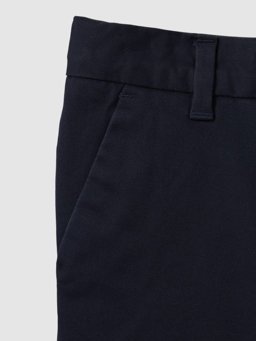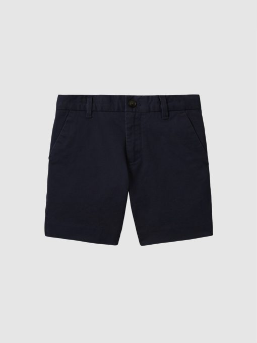 The Navy Wicket chino shorts are crafted from cotton with stretch, offering comfort and style on warm-weather days. Cut to a tailored fit, they feature side slip pockets and buttoned welt pockets at the reverse for a refined finish. Cotton with stretch Side slip pockets Buttoned welt pockets to reverse Front button with zip