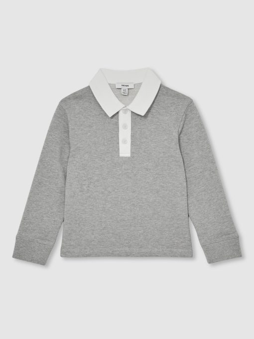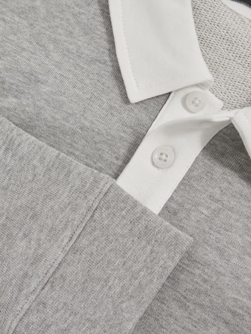 The Grey Marl/White Aiden rugby polo is crafted from loopback cotton for a soft yet structured feel. A contrasting collar and half-button placket nod to its sporting roots, while ribbed cuffs complete the long-sleeve design. 100% Loopback cotton Contrasting polo collar Contrasting half-button placket Long sleeves Ribbed cuffs