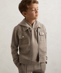 The Medina overshirt is crafted from smooth interlock jersey for a premium handle. Press-stud flap pockets add a functional touch, while a front zip completes the design with a sleek, modern edge. Interlock jersey Chest flap patch pockets with press-stud Flat collar Front zip closure