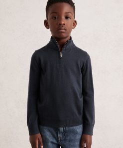 The Midnight Navy Blackhall jumper is a classic half-zip style, crafted from extra-fine merino wool. A finely ribbed hem and cuffs complete the look. 100% Merino wool Funnel neck Half zip Ribbed hem and cuffs