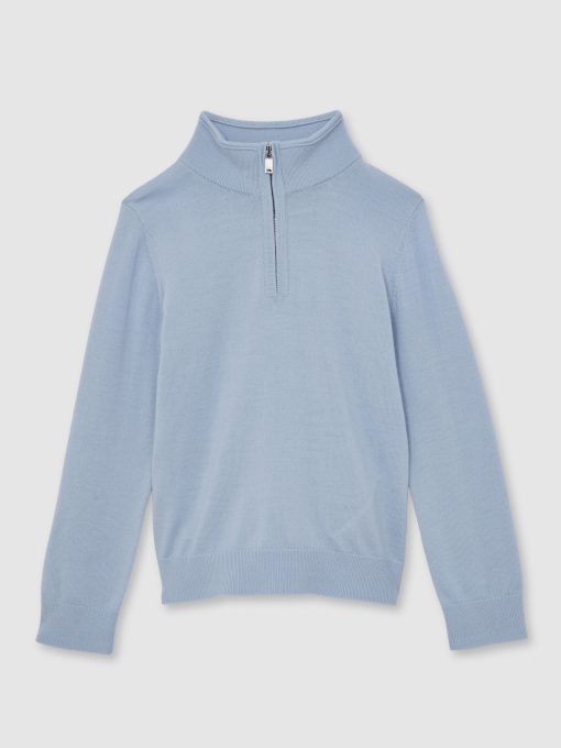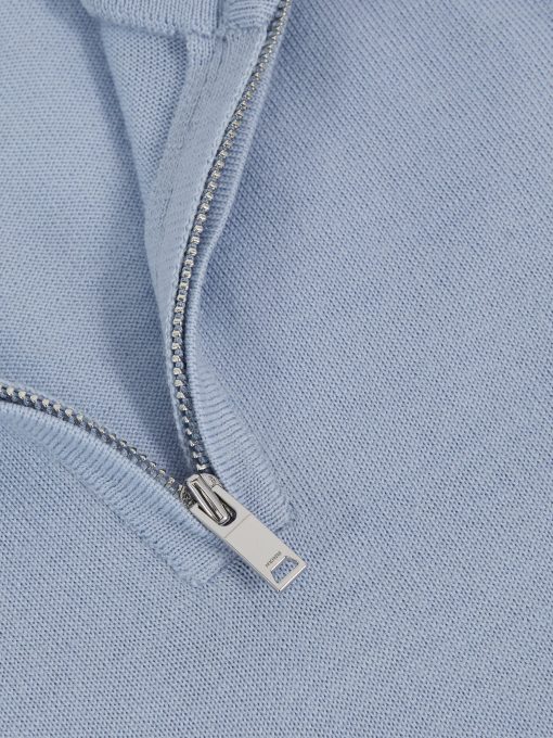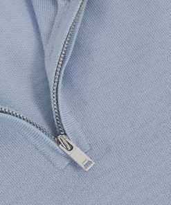 The Soft Blue Melange Blackhall jumper is a classic half-zip style, crafted from extra-fine merino wool. A finely ribbed hem and cuffs complete the look. 100% Merino wool Funnel neck Half zip Ribbed hem and cuffs