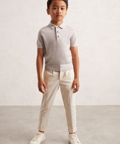 Reiss Kid’s Boys 9-13 Yrs Merino Wool Short Sleeve Polo Shirt In Wicker Melange | Wicker Melange