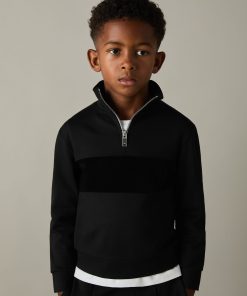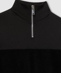 The black Selin sweatshirt updates a classic half-zip funnel-neck silhouette with a tactile velour panel to the chest. Lean into this luxe loungewear aesthetic by styling with the co-ordinating joggers. Half-zip funnel neckline Velour panel to chest Long sleeves