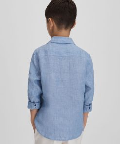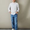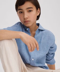 The long-sleeve Sky Blue Ruban shirt is designed from a lightweight, breathable linen fabric with a slightly marled texture, perfect for resort destinations. 100% linen Marled texture Cutaway collar Button-front closure Long sleeves Buttoned cuffs