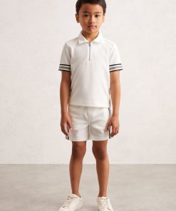 Contrasting cuff stripes and a half-zip collar give the White Wills polo shirt a refined, sporty edge. It’s crafted from textured fabric for a tactile handle. Textured finish Stripe cuffs Polo collar Half-zip