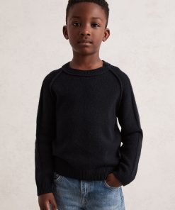 Crafted from wool with a touch of cashmere for luxurious softness, the Navy Foulton jumper is a classic knit, elevated by reverse seams at the shoulder and raised stripes on each sleeve. Rib-knit trims refine the design Wool-cashmere blend Reverse seams Crew neckline Rib-knit trims