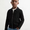 V-stitch cable knitting through the front of the Gideon cardigan lends artisanal appeal. A classic collar offers soft structure to the neckline, while subtly branded buttons add a signature finish. 100% wool. V-stitch cable knit. Classic collar. Front buttons.
