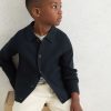 V-stitch cable knitting through the front of the Gideon cardigan lends artisanal appeal. A classic collar offers soft structure to the neckline, while subtly branded buttons add a signature finish. 100% wool. V-stitch cable knit. Classic collar. Front buttons.