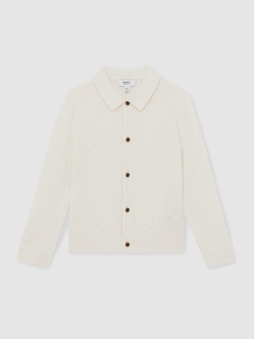 Reiss Kid’s Boys 9-13 Yrs Wool V-stitch Button-through Cardigan In Off White | Off White