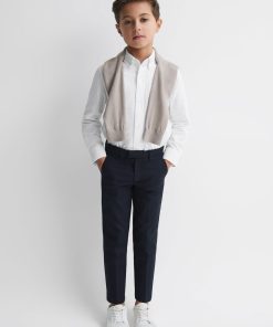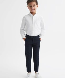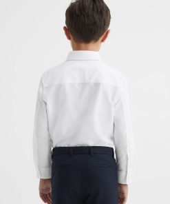 Crafted from cotton, the white Greenwich Oxford shirt will become a wardrobe staple thanks to its comfortable wear and slim fit. Wear it as part of a smart outfit for a formal finish, or pair with trousers and sneakers for a modern take on preppy styling. 100% cotton Button-down collar Button-front closure Chest patch pocket Long sleeves Buttoned cuffs Slim fit The model is wearing a size 5-6 yrs. Measurements of model: Height 3ft 7' / 115cm.