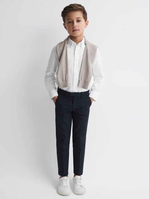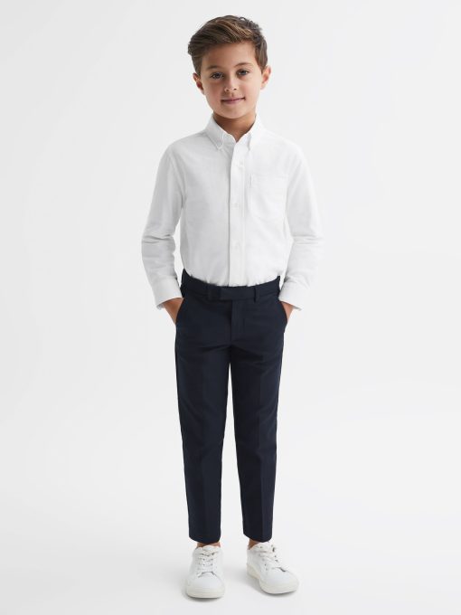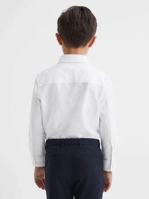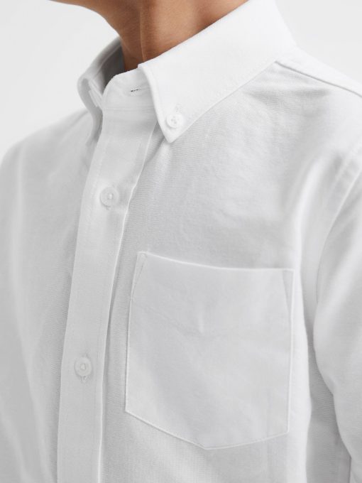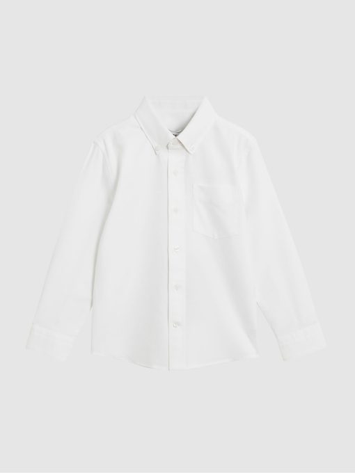 Crafted from cotton, the white Greenwich Oxford shirt will become a wardrobe staple thanks to its comfortable wear and slim fit. Wear it as part of a smart outfit for a formal finish, or pair with trousers and sneakers for a modern take on preppy styling. 100% cotton Button-down collar Button-front closure Chest patch pocket Long sleeves Buttoned cuffs Slim fit The model is wearing a size 5-6 yrs. Measurements of model: Height 3ft 7' / 115cm.