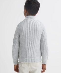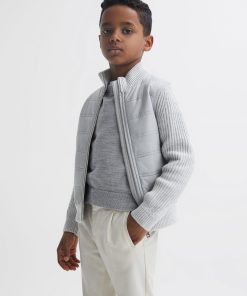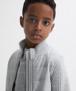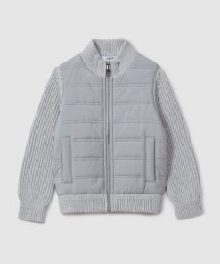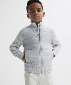 Reiss Kid’s Boys 9-14 Yrs Hybrid Zip Through Quilted Jacket In Soft Grey Melange | Soft Grey Melange