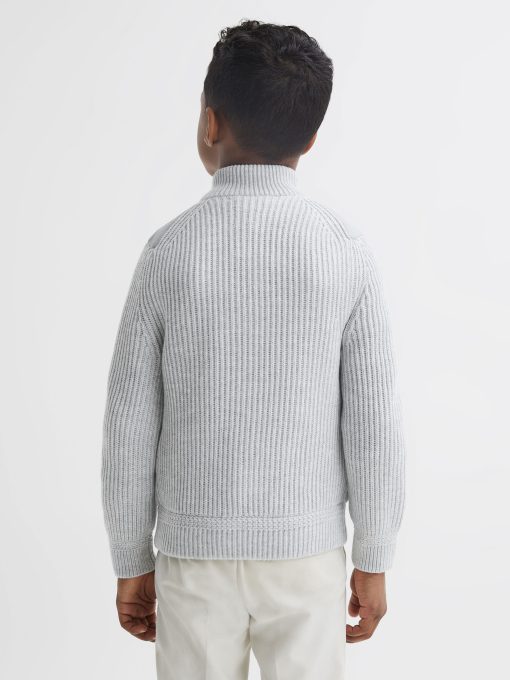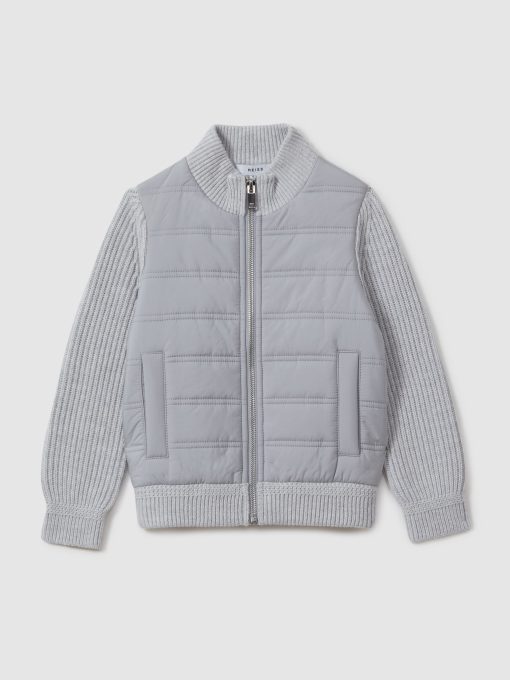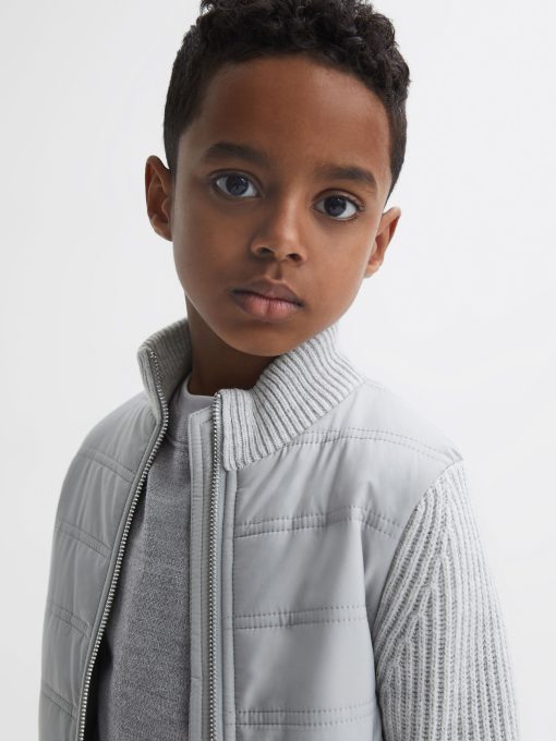 Reiss Kid’s Boys 9-14 Yrs Hybrid Zip Through Quilted Jacket In Soft Grey Melange | Soft Grey Melange