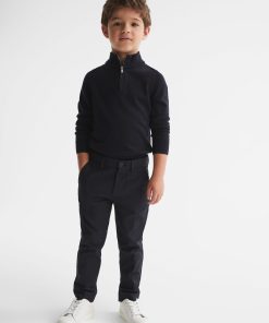 The slim-fit, cotton-rich Navy Eastbury chinos are enhanced with stretch for a comfortable wear, no matter the occasion. Cotton-stretch blend Side-slip pockets Jetted pockets to reverse Slim fit