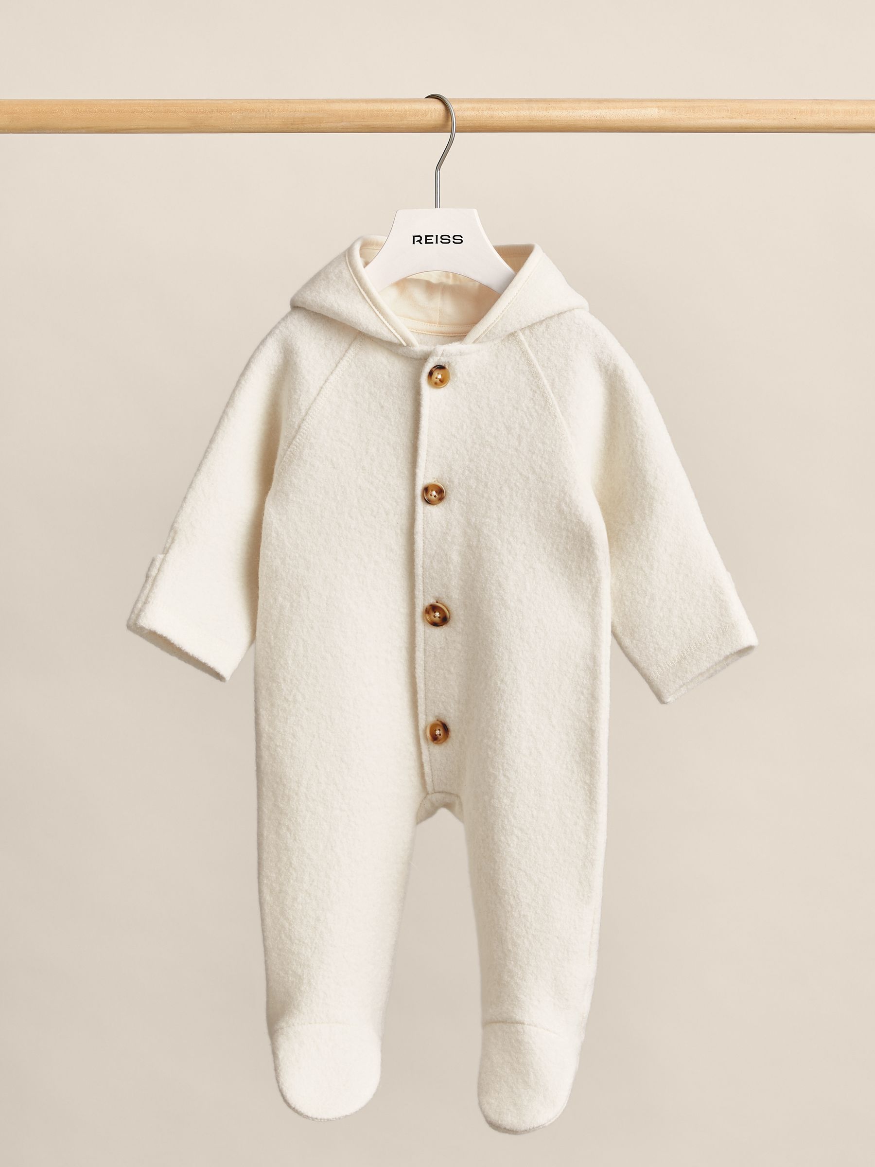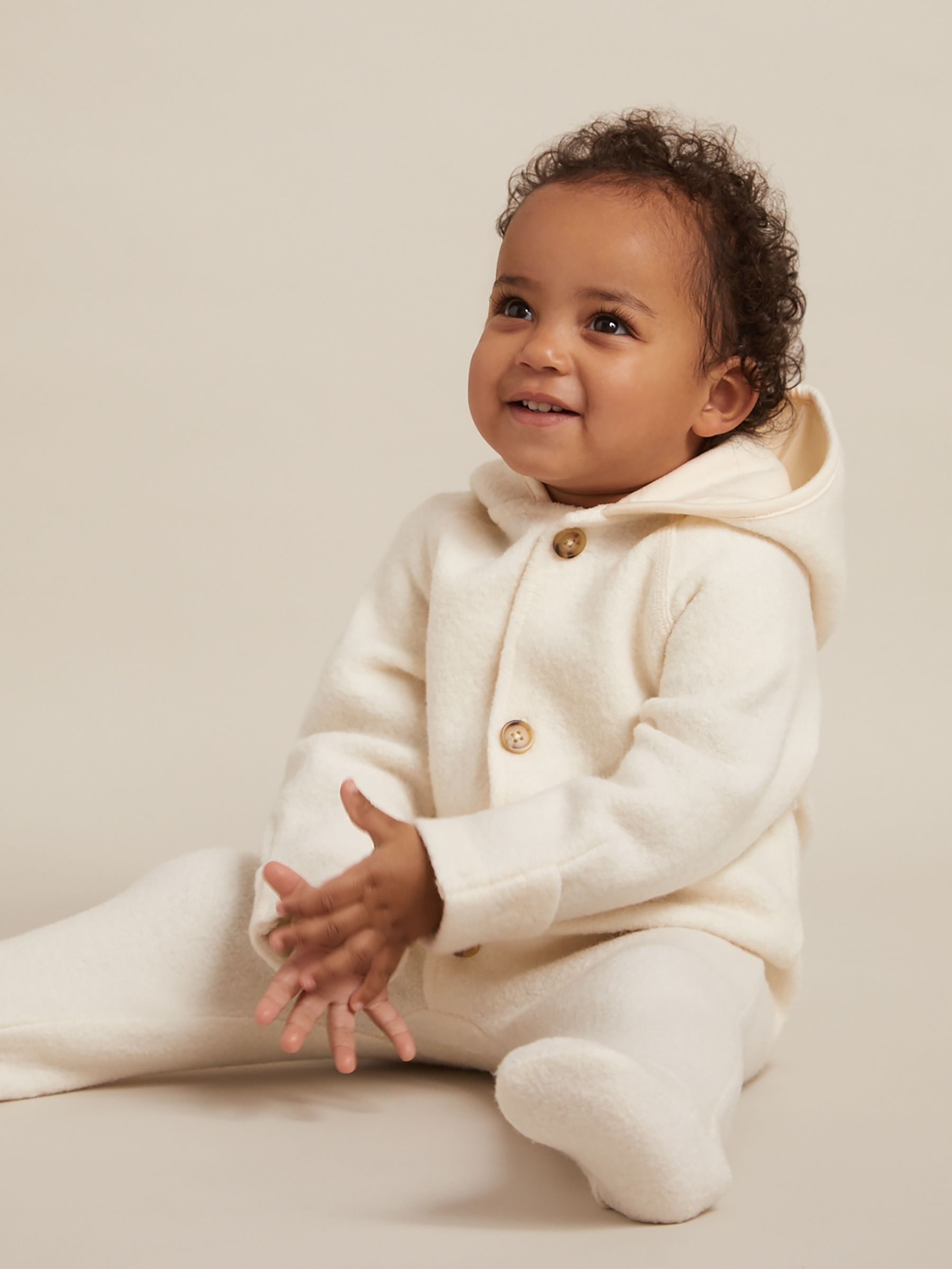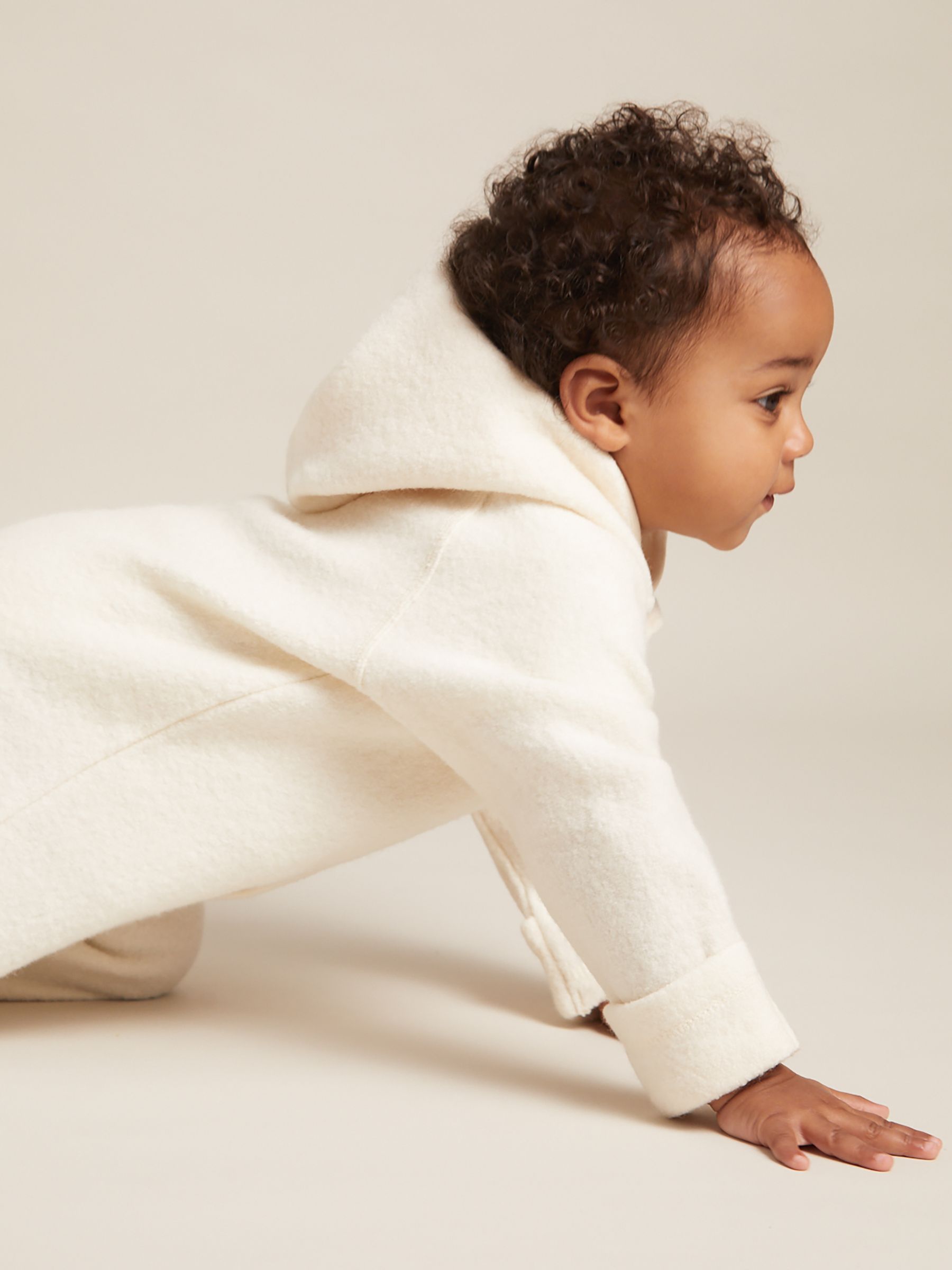 The Jesse pram suit is crafted from cosy boiled wool, with built-in feet and a lined hood for added warmth. Long raglan sleeves and a front button closure ensure comfort and ease of dressing for little ones. 100% Wool Lined hood Long raglan sleeves Mitten cuffs (0-3m and 3-6m) Built-in feet Front button closure Welcome little ones into the world and make forever memories with precious pieces for baby, crafted from beautifully soft cotton and the finest cashmere.