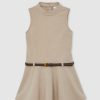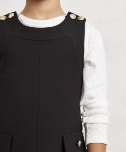 Crest-embossed buttons at the shoulder give the Cyrus shift dress a subtle pinafore feel, while buttoned pocket flaps add a charming finish. It's sleeveless shape makes it ideal for effortless layering. Crest-embossed buttons. Crew neckline. Sleeveless. Button pocket flaps.