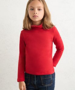 Reiss Kid’s Girls 13-14 Yrs Cotton-jersey Roll-neck Top With Stretch In Red | Red