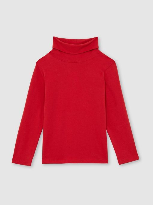 Reiss Kid’s Girls 13-14 Yrs Cotton-jersey Roll-neck Top With Stretch In Red | Red