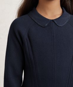 The Zadie dress is crafted from a compact knit and shaped to a softly flared skater silhouette. Crystal embellishments at the collar and cuffs add sparkle, while ribbed lines down the front lend subtle texture. Compact knit Skater style Crystal-embellished collar and cuffs Rib-knit detailing