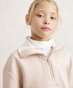 The Laney sweatshirt blends sporty function with casual style, crafted from compact interlock jersey with stretch. Its boxy silhouette is shaped by dropped shoulders and a drawstring hem, while the funnel neck zips up for warmth or unzips to reveal a soft ribbed interior. Interlock jersey with stretch, Funnel neck, Drawstring hem, Elasticated cuffs, Half zip