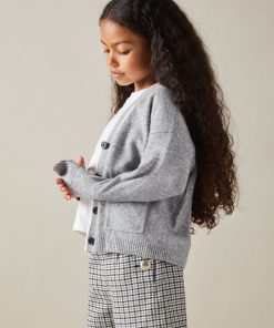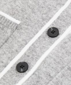 Fine wool yarns are mixed with cashmere for the Grey Juni button-through cardigan, ensuring ultimate comfort and breathability. Its relaxed fit is perfect for layering over T-Shirts and roll necks alike. Wool-cashmere blend Button-front closure Patch pockets Ribbed trims Contrast tips Fashioning seam to reverse Relaxed fit