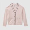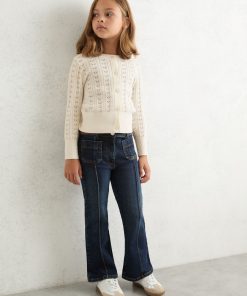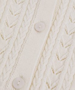 The Flo cardigan is a lightweight layer knitted from a breathable cotton and wool blend, ideal for year-round wear. Its intricate mix of cable and pointelle stitching adds delicate texture, while ribbed trims complete the look with a refined finish. Cotton and wool blend Cable and pointelle knit Crew neckline Ribbed trims Front buttons
