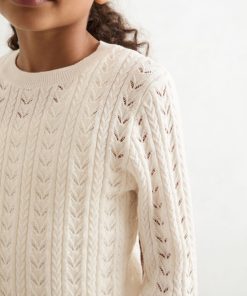Delicate pointelle stitching brings a charming finish to the Lydia jumper, knitted from a soft cotton-wool blend for comfort and lightness. Cable details and ribbed trims complete this refined layer. Cotton-wool blend Pointelle knit Cable-knit detailing Crew neckline Ribbed trims