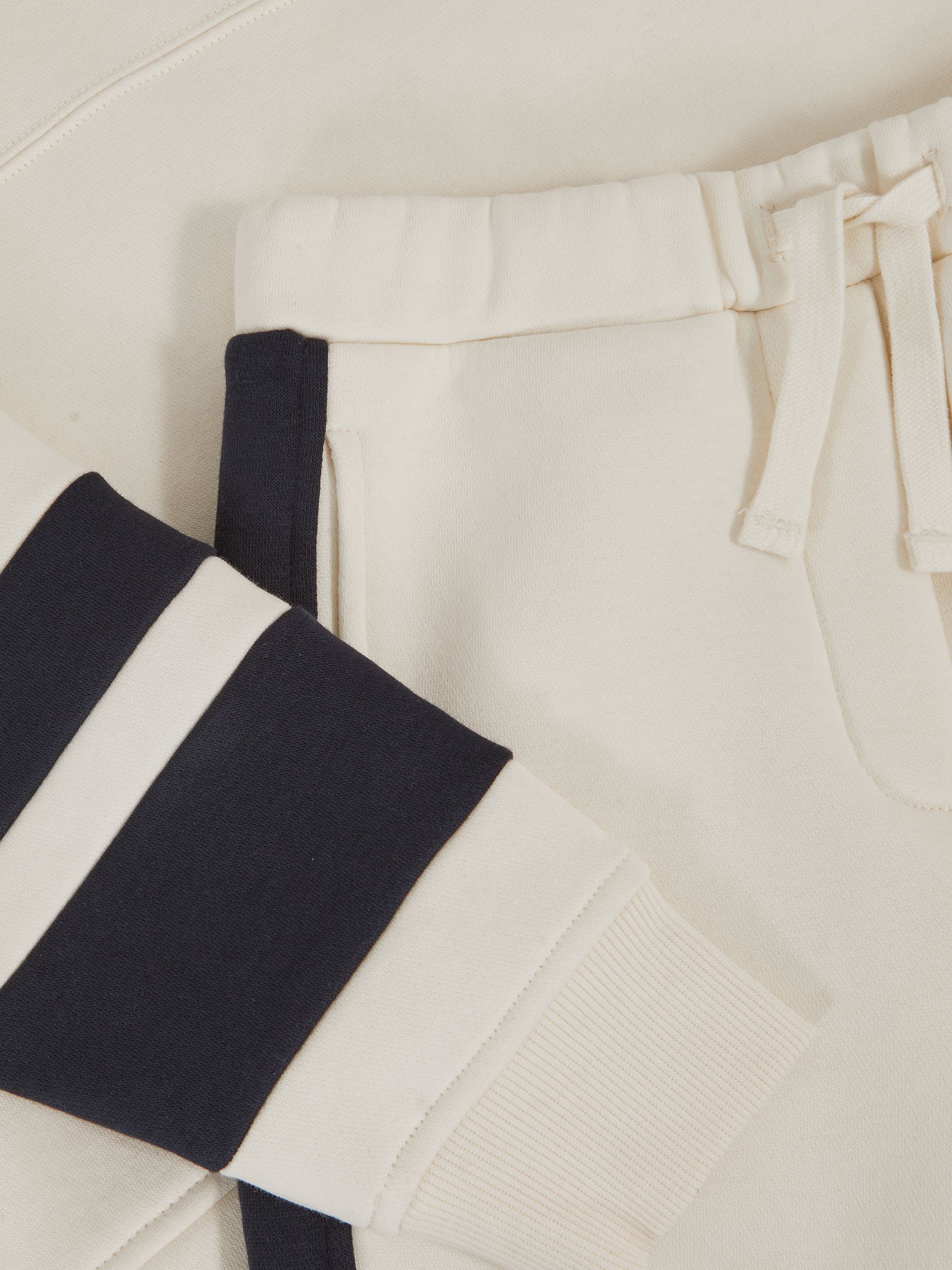 Crafted from premium cotton-blend jersey, the Ecru Cara set is perfect for relaxed weekend wear. Contrasting stripes to the hood, sleeves and side-leg elevate with a sporty touch, while cuffed ankles create a tapered silhouette. Joggers and hoodie set Cotton-blend jersey Contrasting stripes Ribbed cuffs Elasticated drawstring waist Cuffed ankles