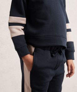 Crafted from premium cotton-blend jersey, the Navy Cara set is perfect for relaxed weekend wear. Contrasting stripes to the hood, sleeves and side-leg elevate with a sporty touch, while cuffed ankles create a tapered silhouette. Joggers and hoodie set Cotton-blend jersey Contrasting stripes Ribbed cuffs Elasticated drawstring waist Cuffed ankles