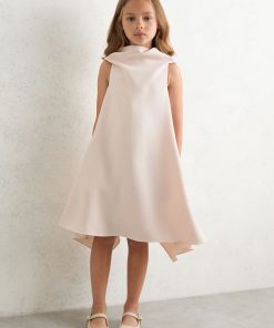 The Pink Shauna dress is crafted with a high neckline that lays over the shoulders and drapes down the back for fluid movement and a charming trapeze shape. High neckline Drape back element Zip-closure to reverse Lined