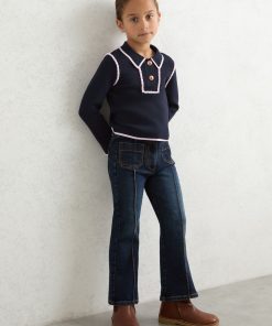 Reiss Kid’s Girls 3-9 Yrs Piped Knitted Collar Top In Navy | Navy