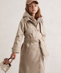 A modern take on classic outerwear, the Astrid trench coat features a removable padded gilet insert with a hood for additional warmth. Storm flaps, side welt pockets, and a self-tie belt complete its functional, refined design.Crafted with cottonRemovable padded insert with hoodStorm flapsSelf-tie beltFront buttons