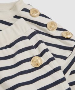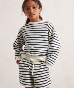 The Daya sweatshirt and shorts set is crafted from a soft cotton blend with a striped finish for a relaxed yet elevated feel. Crest-embossed buttons at the shoulder and short pockets add refined detail, while a drawstring waist ensures all-day comfort. Sweatshirt and shorts set Cotton blend Stripes Crest-embossed buttons Crew neckline Drawstring waist