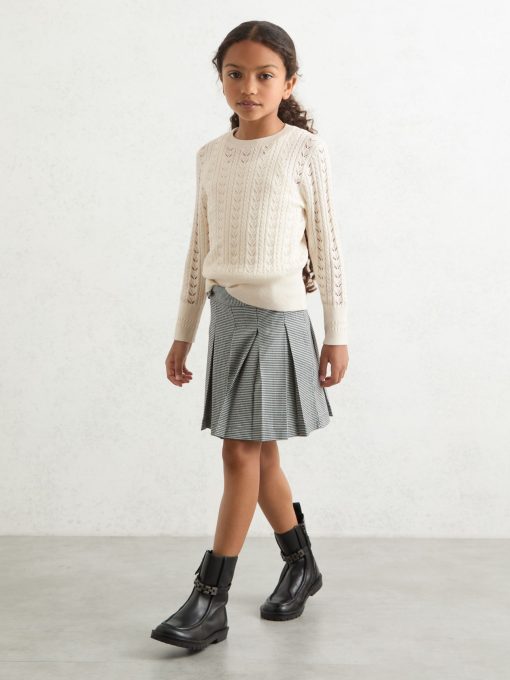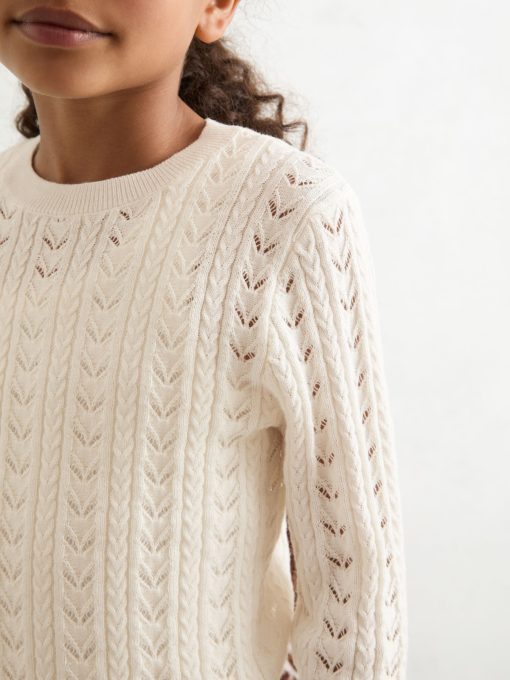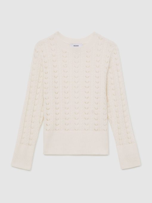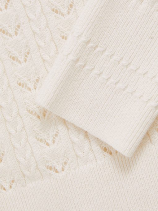 Delicate pointelle stitching brings a charming finish to the Lydia jumper, knitted from a soft cotton-wool blend for comfort and lightness. Cable details and ribbed trims complete this refined layer. Cotton-wool blend Pointelle knit Cable-knit detailing Crew neckline Ribbed trims