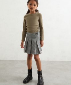 Reiss Kid’s Girls 4-9 Yrs Cotton Ruched Long-sleeve T-shirt With Stretch In Khaki | Khaki