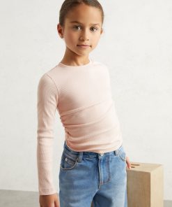 Reiss Kid’s Girls 4-9 Yrs Cotton Ruched Long-sleeve T-shirt With Stretch In Pale Pink | Pale Pink