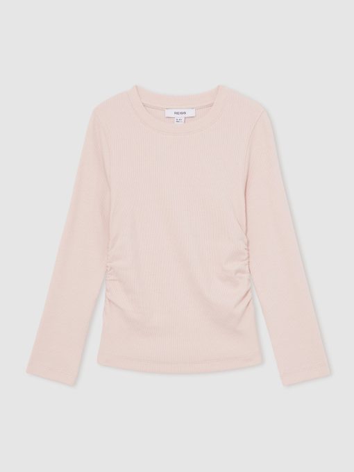 Reiss Kid’s Girls 4-9 Yrs Cotton Ruched Long-sleeve T-shirt With Stretch In Pale Pink | Pale Pink