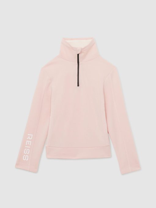 The Pink Brina top is a comfortable base layer crafted from smooth modal, making it perfect for cold-weather adventures. Designed with thumbhole cuffs for added warmth, it features a half-zip funnel neck for easy adjustments and a logo detail at the sleeve. Made with modal Cuffs with thumbholes Logo on sleeve Funnel neck Half-zip with guard