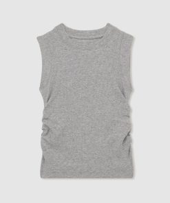 Crafted from a finely ribbed fabric, the Grey Trudy vest top features soft ruching at each side for added texture. It’s finished with a classic crew neckline for a timeless look. Cotton with stretch Fine ribbing Ruching Crew neckline