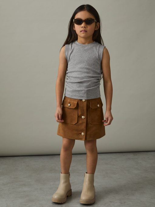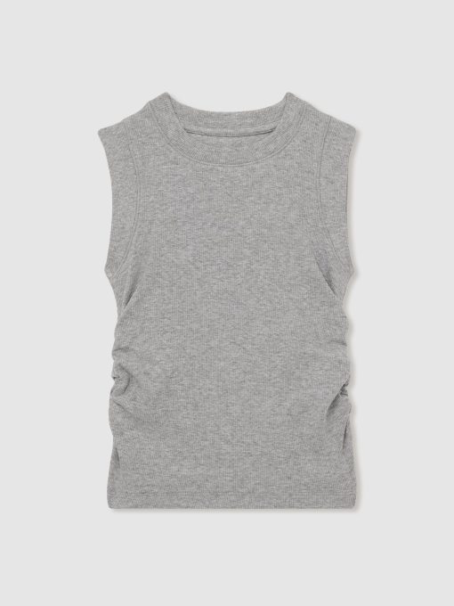 Crafted from a finely ribbed fabric, the Grey Trudy vest top features soft ruching at each side for added texture. It’s finished with a classic crew neckline for a timeless look. Cotton with stretch Fine ribbing Ruching Crew neckline