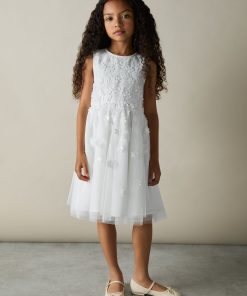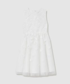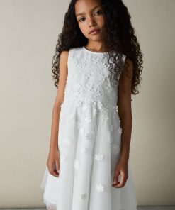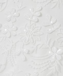 The Clementine bridesmaid dress is crafted with a lightweight tulle overlay that’s embroidered with delicate flowers and tonal sequins. Multiple layers create a flared, princess-style skirt that offers just the right amount of volume. Tulle overlay Floral embroidery Sequins Layered Skirt Lined Concealed zip to reverse