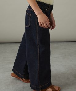 A wide-leg cut gives the Myrtle jeans a modern, relaxed feel. Contrast topstitching frames each feature, whilst a logo patch at the reverse offers a signature finishing touch. Denim Wide leg Contrast topstitching Logo patch to reverse Front button and zip
