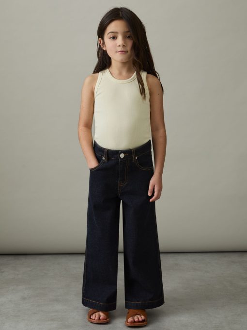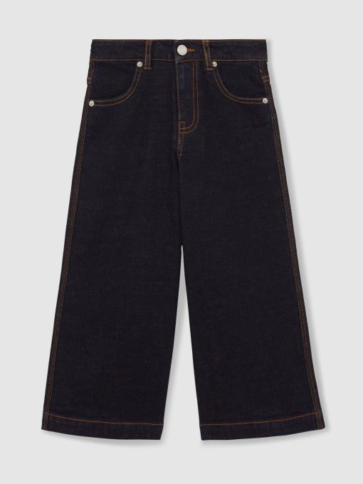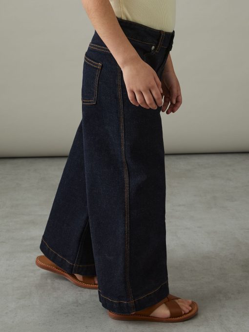 A wide-leg cut gives the Myrtle jeans a modern, relaxed feel. Contrast topstitching frames each feature, whilst a logo patch at the reverse offers a signature finishing touch. Denim Wide leg Contrast topstitching Logo patch to reverse Front button and zip