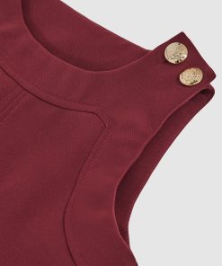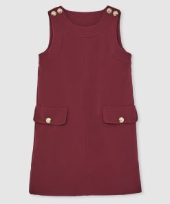 Crest-embossed buttons at the shoulder give the Cyrus shift dress a subtle pinafore feel, while buttoned pocket flaps add a charming finish. It's sleeveless shape makes it ideal for effortless layering. Crest-embossed buttons. Crew neckline. Sleeveless. Button pocket flaps.