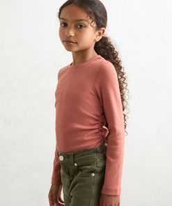 Reiss Kid’s Girls 9-13 Yrs Cotton Ruched Long-sleeve T-shirt With Stretch In Rose | Rose