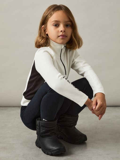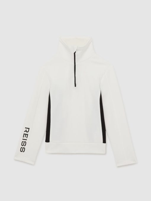 The White/Black Brina top is a comfortable base layer crafted from smooth modal, making it perfect for cold-weather adventures. Designed with thumbhole cuffs for added warmth, it features a half-zip funnel neck for easy adjustments and a logo detail at the sleeve. Made with modal Cuffs with thumbholes Logo at sleeve Funnel neck Half-zip with guard